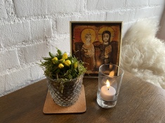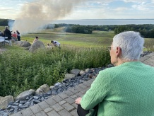 Det blå vemod. Blå er også havets og himlens farve. Og lige dér imellem lever vi. Våg at leve, det er nu du kan det, for selvom vi har masser af tab i vores liv, er der er også en rig historie, som vi bærer med os og der er hele tiden nye begyndelser. Der er en vej og en sammenhæng. Dagen i morgen er en ny mulighed, sendt til os fra Gud. En lille ny opstandelse.