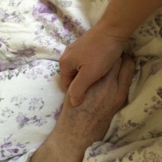 Billedet er mig, der holder min farmor i hånden, en nat jeg vågede ved hendes dødsleje.
