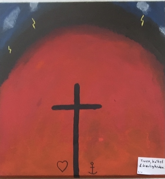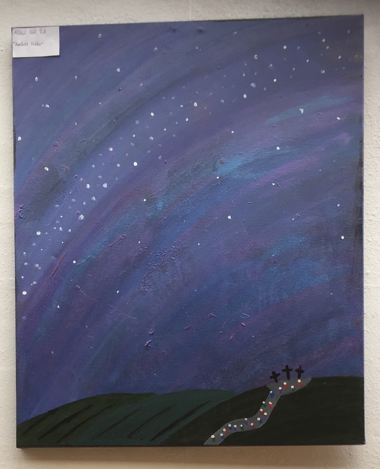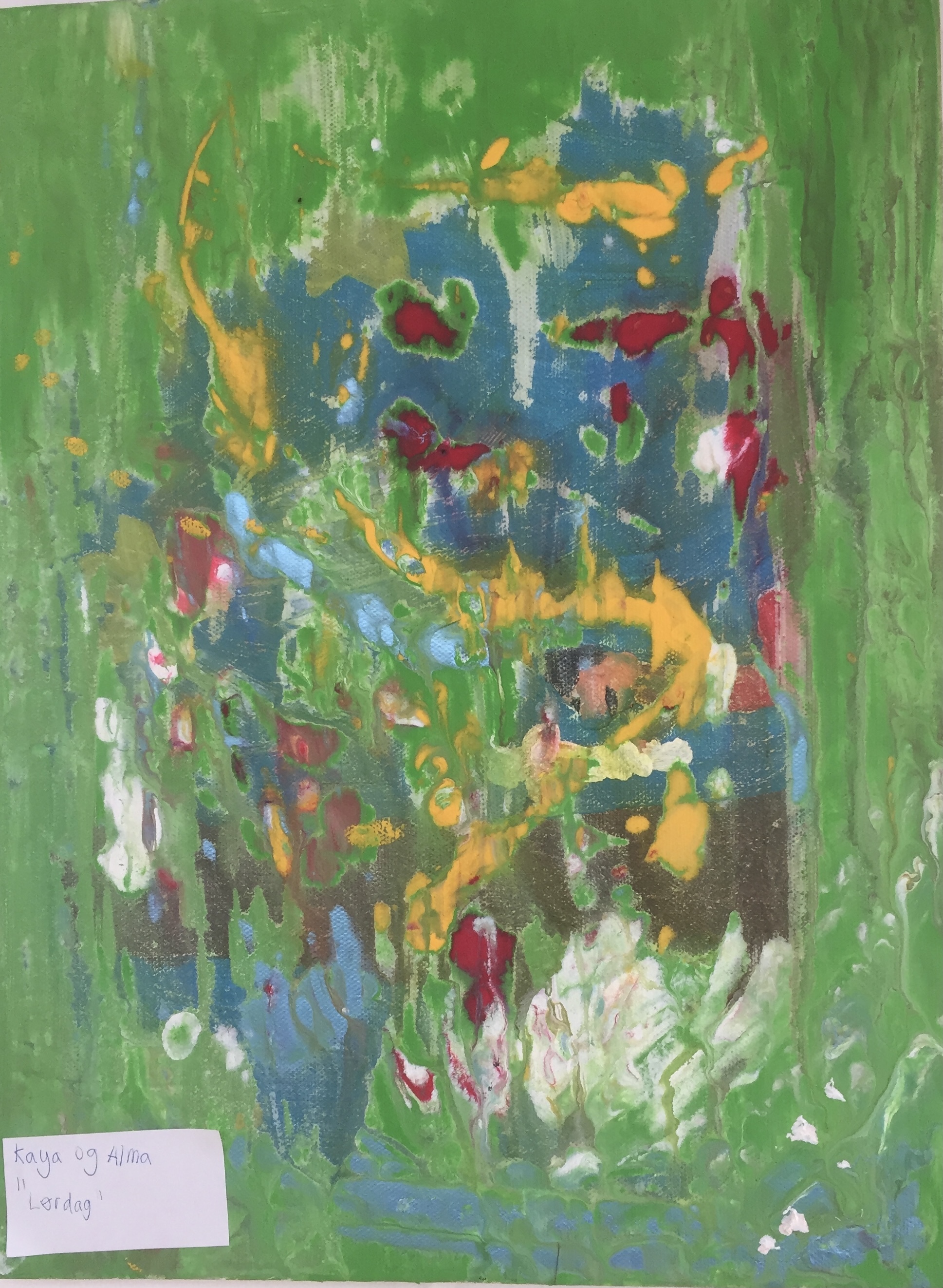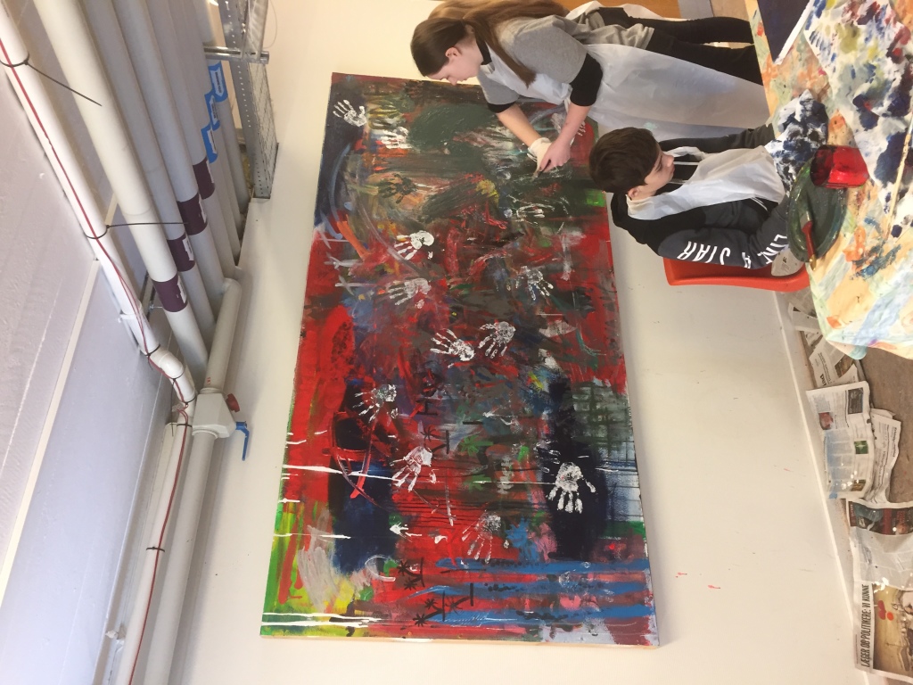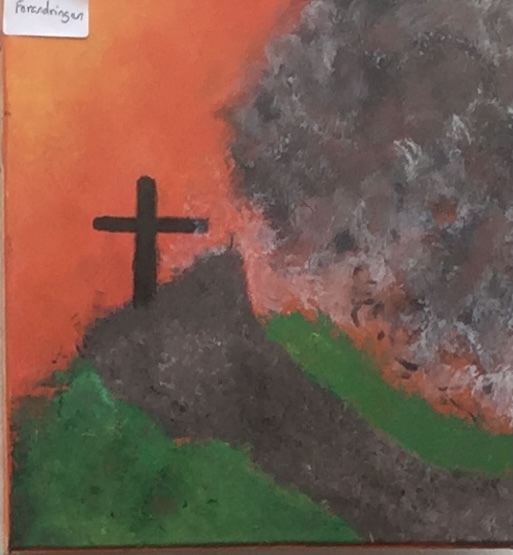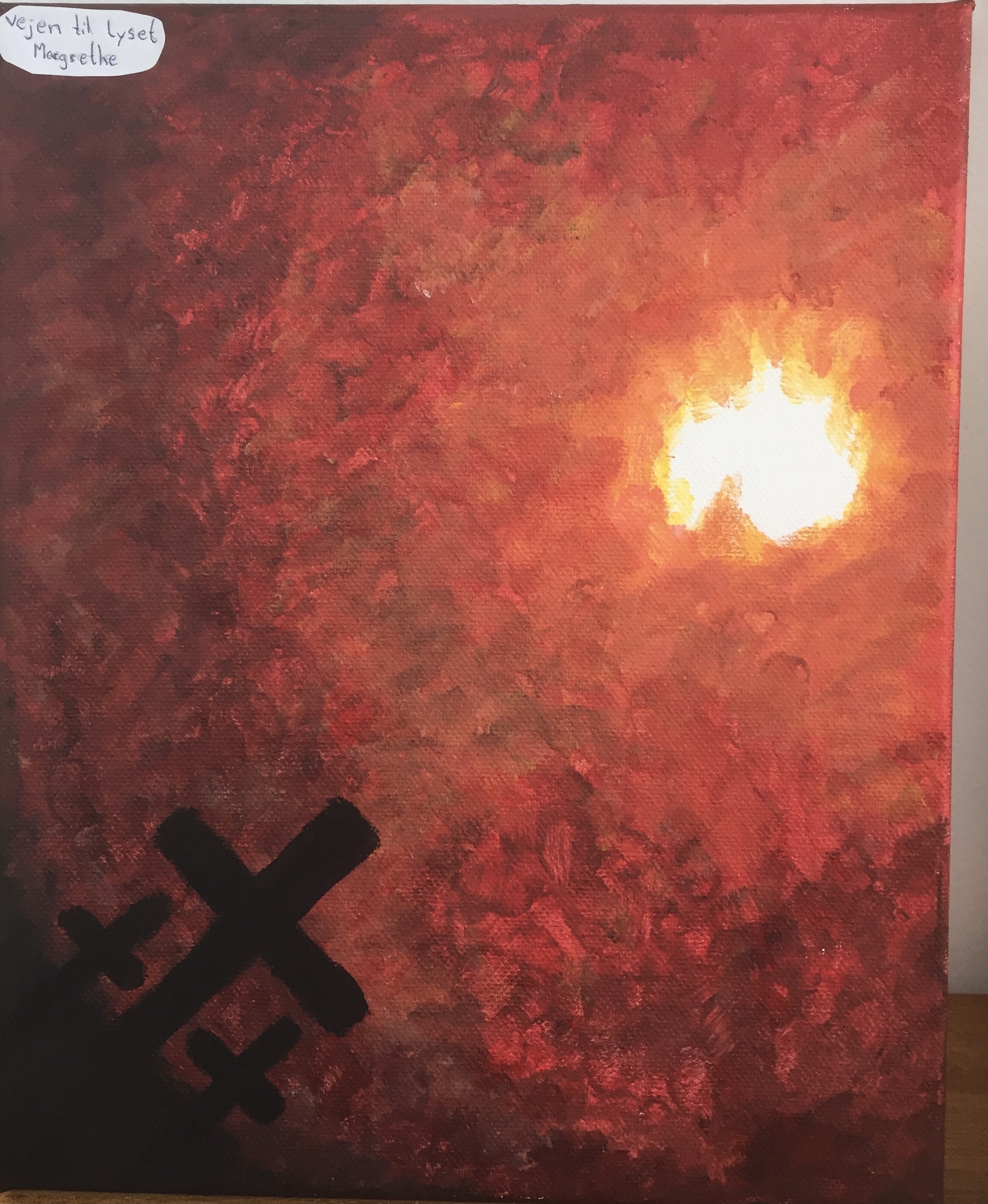 1) Det kunstneriske: Det ene er selve det at male et godt billede. Jeg lærer konfirmanderne noget om billedkomposition, baggrund, farver og teknikker.