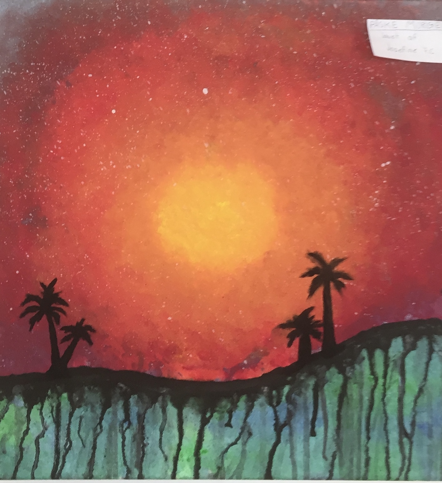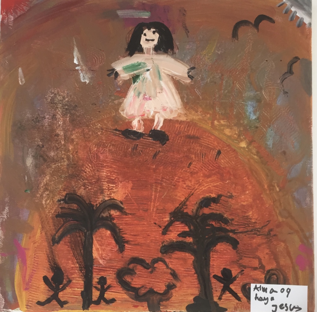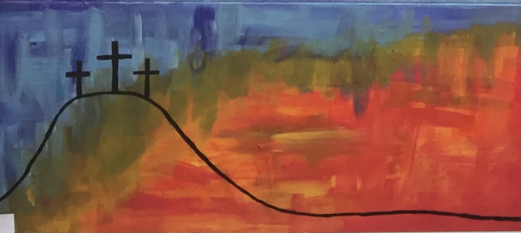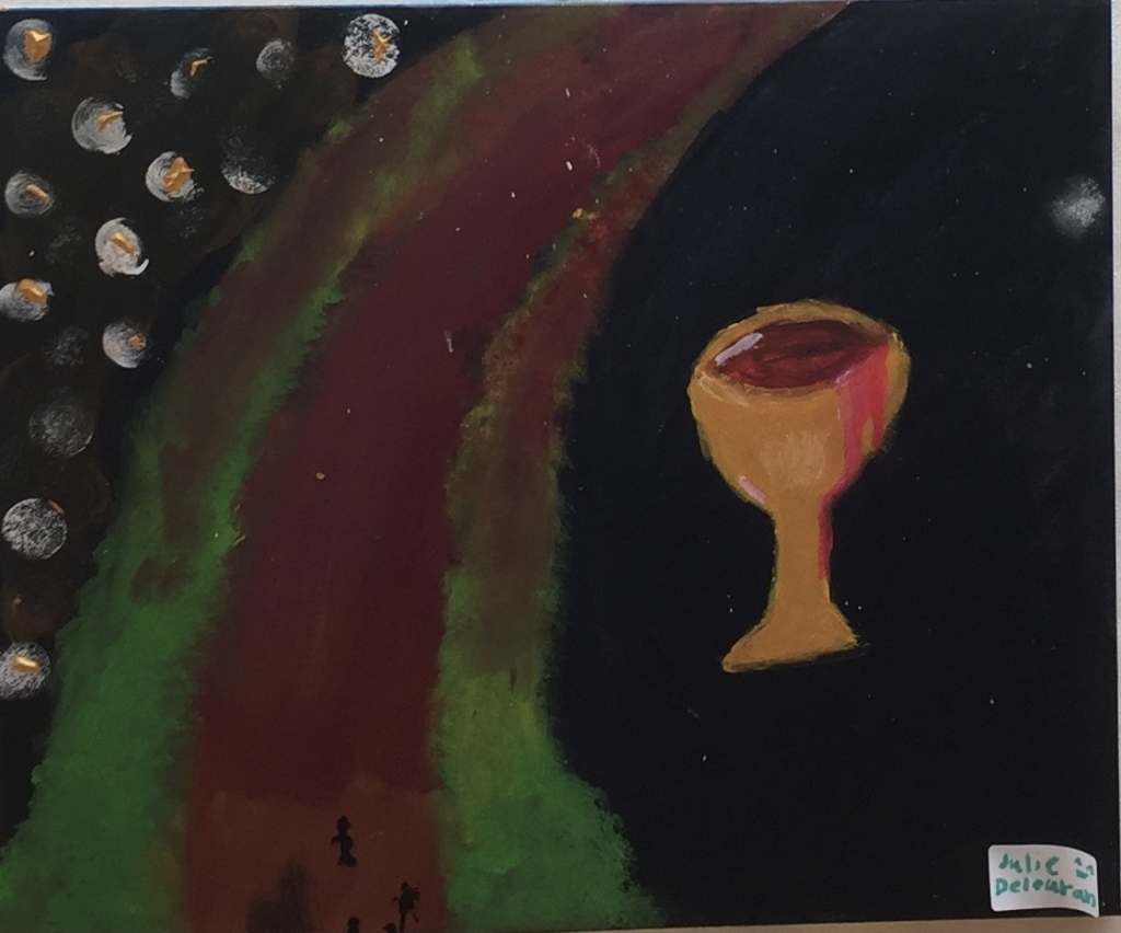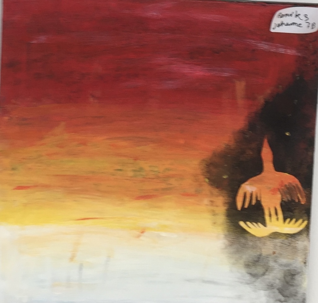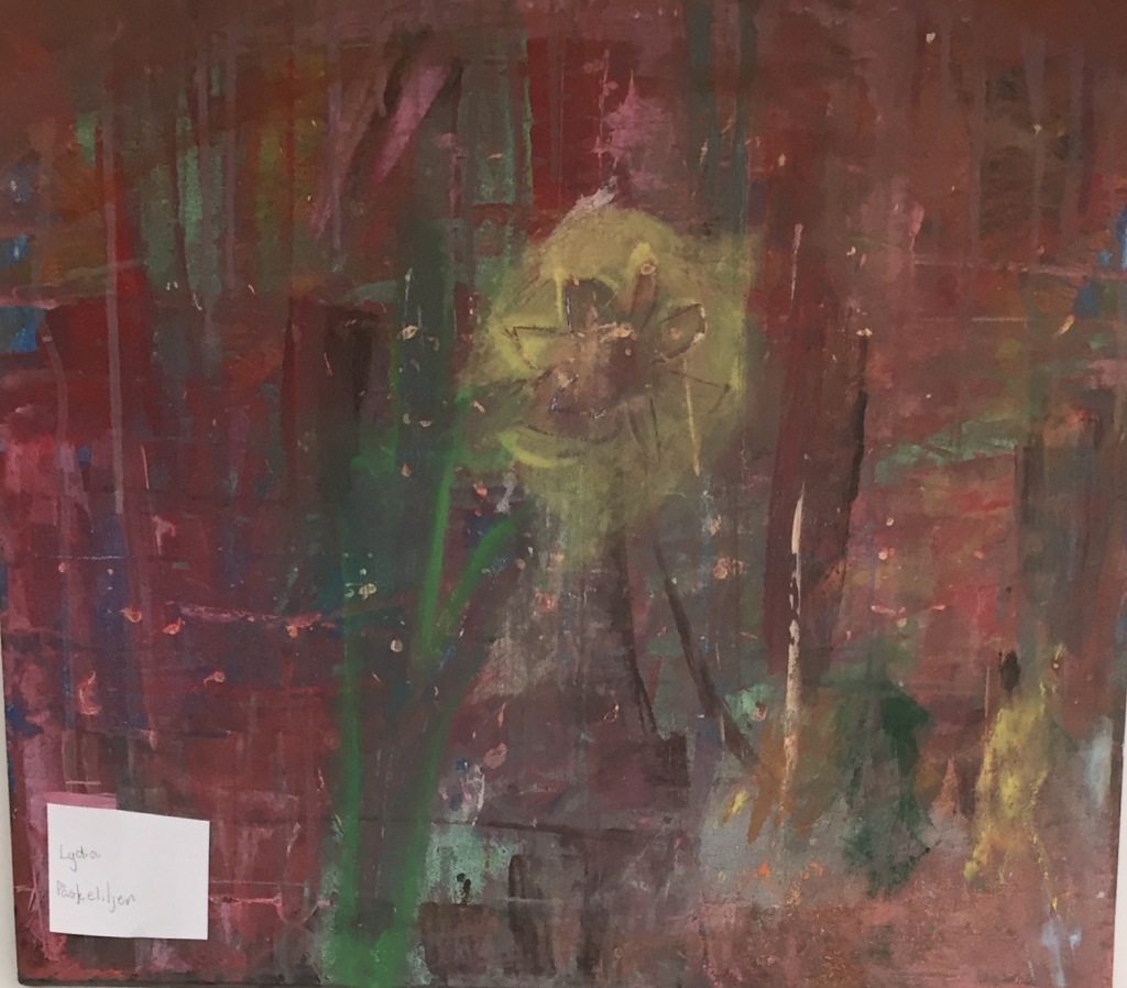 1) Det kunstneriske: Det ene er selve det at male et godt billede. Jeg lærer konfirmanderne noget om billedkomposition, baggrund, farver og teknikker.