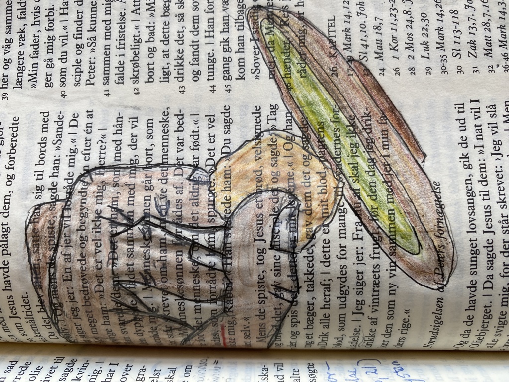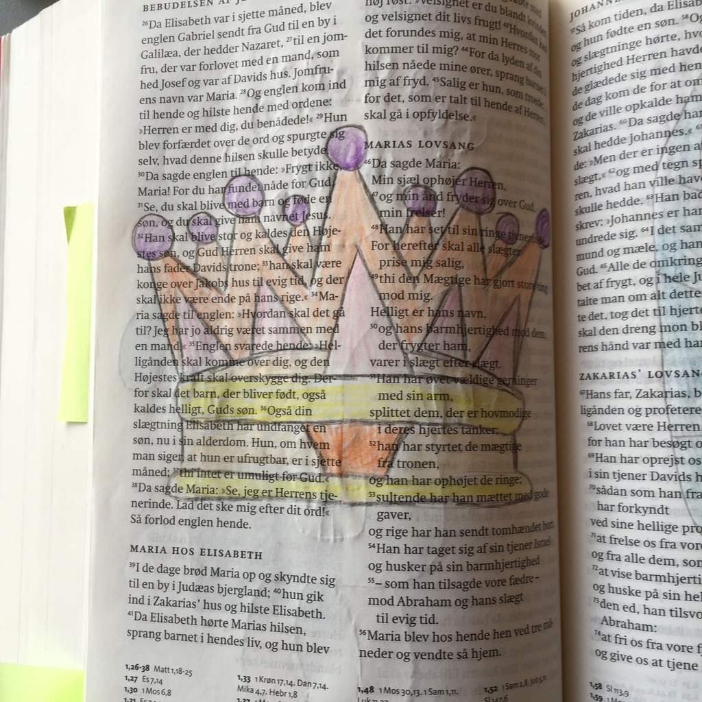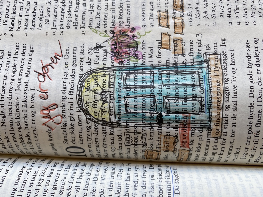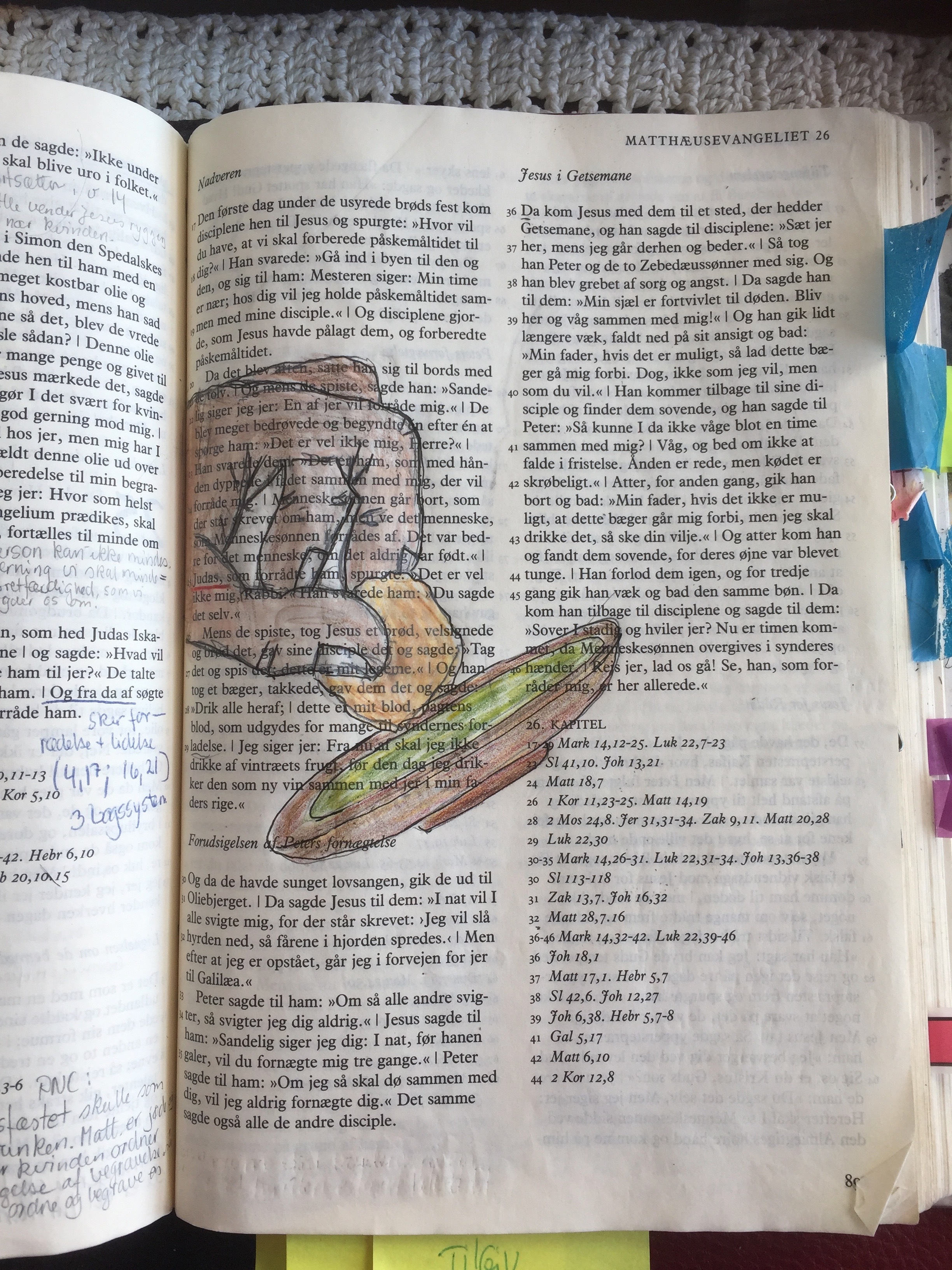Jeg har altid sagt til mig selv, at jeg ikke kunne tegne. Men nu gør jeg det så altså alligevel. Jeg maler/tegner i min Bibel. Det kan du også gøre. Lad dig inspirere af billederne her på siden. Køb evt. en æske akvarelblyanter, som dem jeg bruger. Bare gør det, kast dig ud i det og "læs" bibeltekst således.