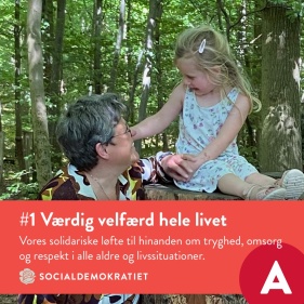 Værdig velfærd er vores solidariske løfte til hinanden om tryghed, omsorg og respekt i alle livsaldre og livssituationer. Den, der ikke er højrøstet, skal også høres. Her er mennesker i centrum!