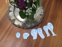 Man skal ikke være ret gammel før man kan bidrage til måltidet. Her har Silje på 3 - og et halvt år! - stået for bordkortene.